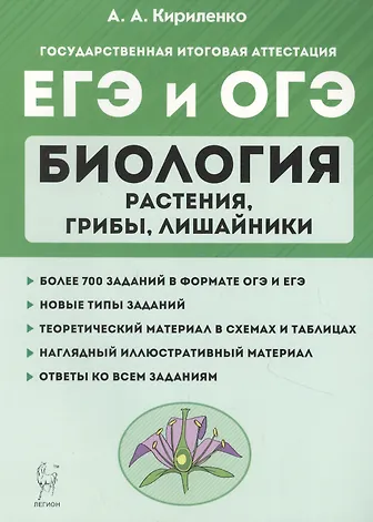 Материалы нашего пособия помогут систематизировать знания и отработать навыки выполнения заданий по темам раздела «Растения, грибы, лишайники». Книга содержит: • о коло 800 заданий всех типов в формате ОГЭ и ЕГЭ, структурированных по темам раздела, в том числе новые типы заданий ЕГЭ; • теоретический материал, представленный в схемах, таблицах и рисунках; • ответы ко всем заданиям. Книга поможет выпускникам 9–11-х классов качественно подготовиться к ОГЭ и ЕГЭ, а также сдать экзамены на высокий балл. Учителя могут использовать учебное пособие для систематизации изученного материала, организации эффективного контроля и выявления возможных пробелов в подготовке выпускников, в том числе и дистанц