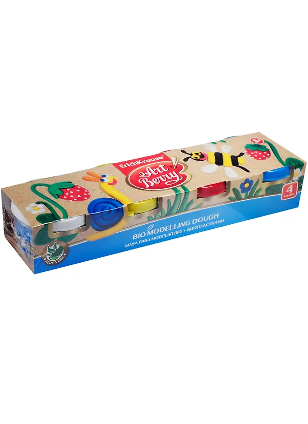 .Биопластилин Art Berry с экстрактом алоэ вера от торговой марки Erich Krause не только поможет ребенку создавать потрясающие объемные композиции, но и бережно защищает кожу детских ручек. В комплекте предоставляется четыре удобные баночки с экологичной пластичной массой для лепки разных цветов весом 35 гр.