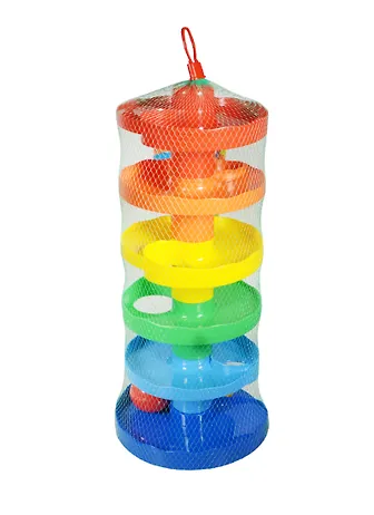 "Зайкина горка" - игрушка-тренажер для малыша. Горка собирается по принципу пирамидки. Нижняя горка вставляется в основание, а остальные горки устанавливаются поверх друг друга. Каждая горка имеет наклон и отверстие. Шарик катится по наклонной, попадая в каждое отверстие.