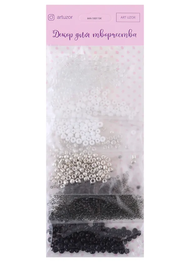 Бисер круглый "Чёрный, белый и серебро" 5 цветов х 10 грамм