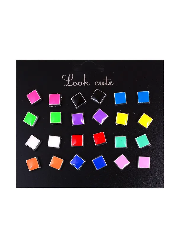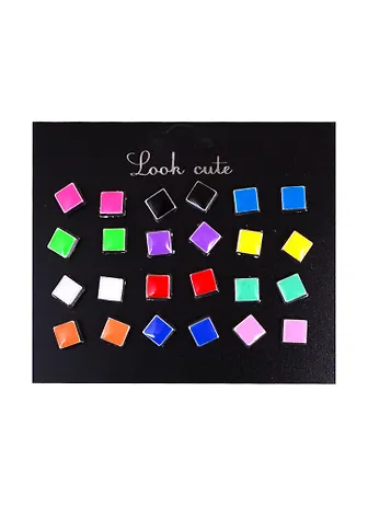 Бижутерия Пусеты в наборе, 12 пар Квадратные в металле (упаковка)