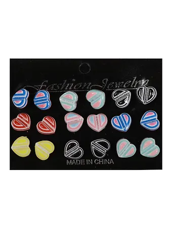 Незаменимый аксессуар для каждой очаровательной красавицы это оригинальные сережки. Приемлемый размер сережек позволит аккуратно и ненавязчиво подчеркнуть Вашу естественную красоту. Так же они легкие благодаря пластику, это очень Важно в выборе сережек, Вы не будете ощущать дискомфорта даже при длительном ношении. Набор сережек состоит из 9 пар сережек-гвоздиков.