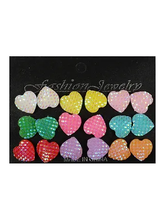 Бижутерия в наборе парами, 9 пар, сердца блеск (11-04827-J5)