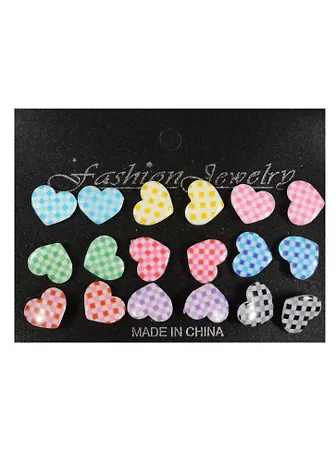 Бижутерия в наборе парами, 9 пар, сердца клетка (11-04827-J4)