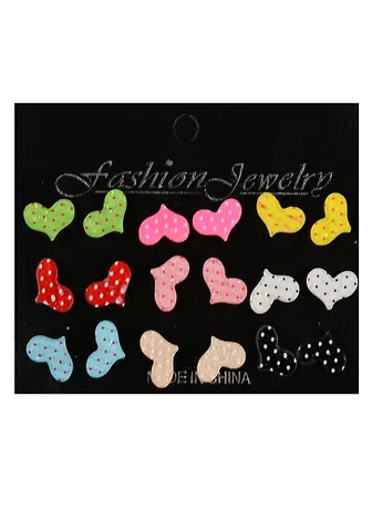 Бижутерия в наборе парами, 9 пар, сердца в горох (11-04827-J6)