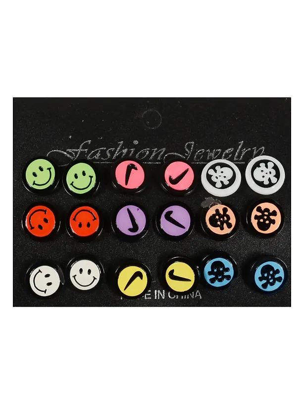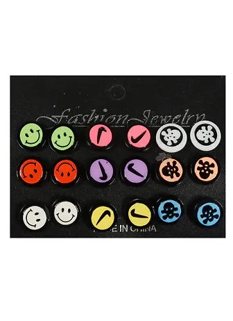 Бижутерия в наборе парами, 9 пар, смайлы (11-04827-J19)