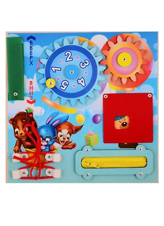 Бизиборд развивающая платформа со всевозможными кнопками, выключателями, щеколдами, крючками и прочими маленькими «опасностями», которые ребенку трогать обычно запрещено. Кроме этого, доску могут дополнять игрушки или предметы разной формы, цвета и фактуры: то, что можно трогать, жать, переключать. Все это должно быть надежнейшим образом закреплено на полотне доски, чтобы игра для малышей стала безопасной. Игры несут развивающую, воспитательную , обучающую функции. И не оставят равнодушным Вашего малыша.Возраст: от 1 года.