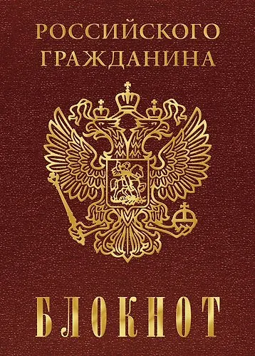 Бизнес-блокнот 80листов, А6ф (112х151мм) твердый переплет, матовая ламинация, отделка металлизированная фольга с 3D эффектом . Иммитирующий российский паспорт блокнот выглядит , с одной стороны, изысканно , а с другой может позабавить.