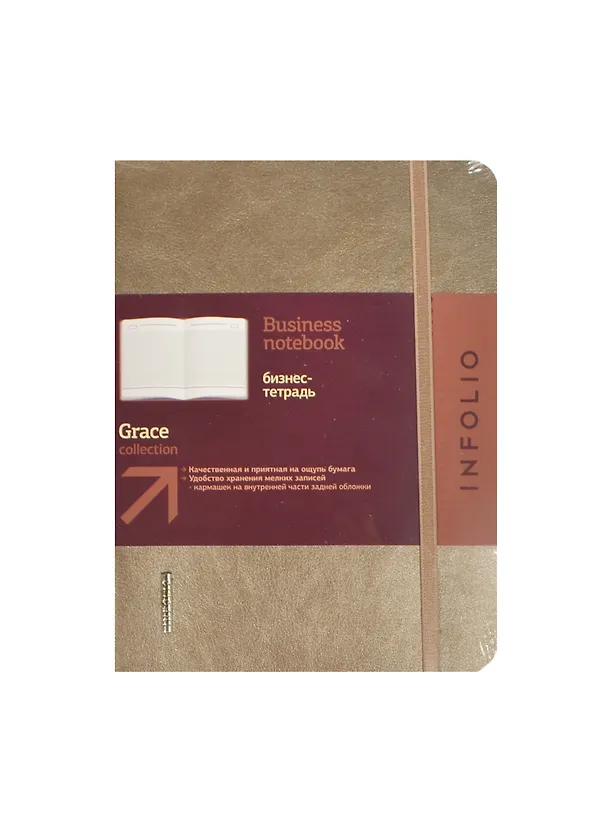 Бизнес-тетрадь А5 80л лин. "Grace" кож.зам., коричневая, на резинке, мягк.переплет, прострочка, IN FOLIO