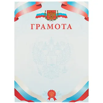 Пришла грамота, как на четвертой фотографии в описании. Грамота понравилась. Бумага плотная, цвет красок яркий, насыщенный. Сразу видно, что официальная. В самом верху герб и флаг Российской Федерации. При доставке ничего не помялось, пришла в презентабельном виде.