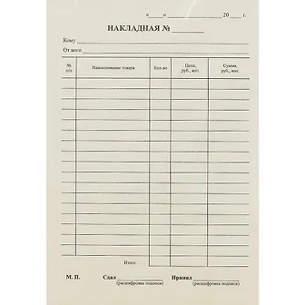 Бланк "Накладная". Бланки изготовлены из газетной бумаги и склеены в книгу по 100 листов. Индивидуальная упаковка в термоусадочную пленку.