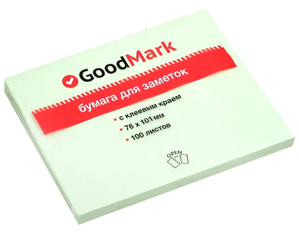 Блок бумаги 76*101 самоклеящийся зеленый 100л