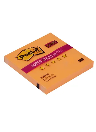 Стикеры со слоем повышенной клейкости. Отлично держатся на "сложных" поверхностях - пластик, кожа, ткань, керамика. Многократно переклеиваются, не оставляя следов. Размер 76х76 мм. В упаковке 90 листов. Цвет - неоновый оранжевый