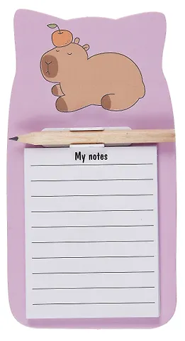 40 листов формата 90 на 170 миллиметров хватает надолго, а милая капибара с апельсином поднимает настроение каждый раз, когда вы к нему обращаетесь. Блок аккуратно оформлен и станет приятным маленьким подарком себе или друзьям.