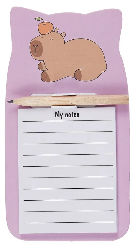 Блок для записей 90*170 40 листов, "Капибара с апельсином" с карандашом, на магните