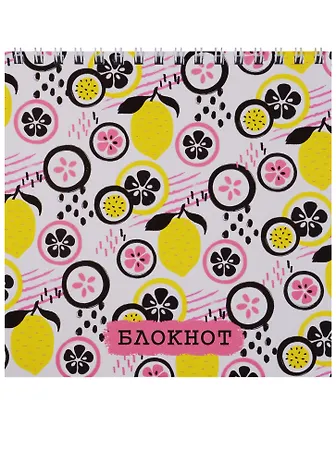 Блокнот 140*140 мм, 60 л. арт. 47297/10 ЦИТРУСЫ /гребень сверху, полноцв. обложка, бумага 250 г, мел., глянцевый УФ-лак. Блок - 60 листов, клетка, офсет 65 г./
