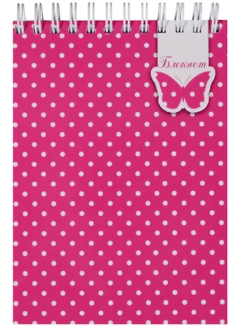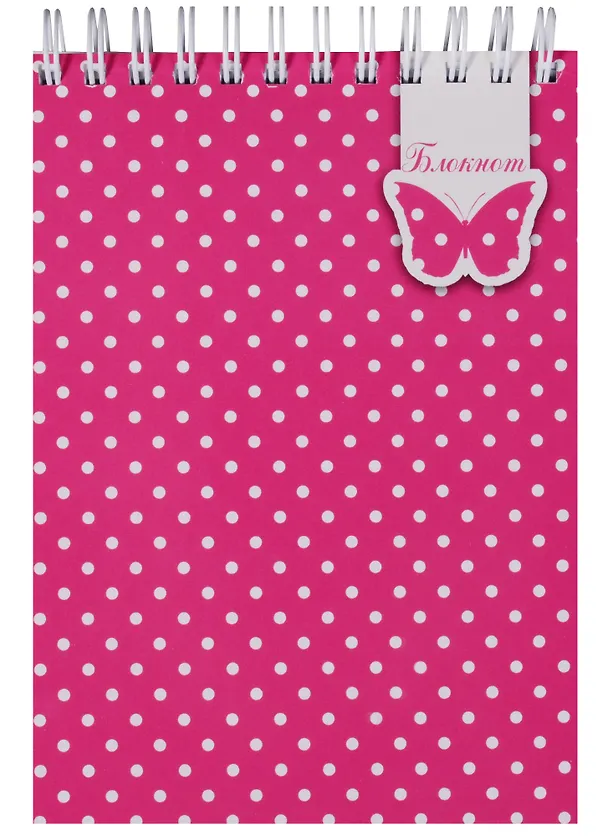 Блокнот А6 120л кл. "БЕЛЫЙ ГОРОШЕК НА РОЗОВОМ" верхн.гребень, карт.обл., глянц.УФ-лак, офсет 60г/м2