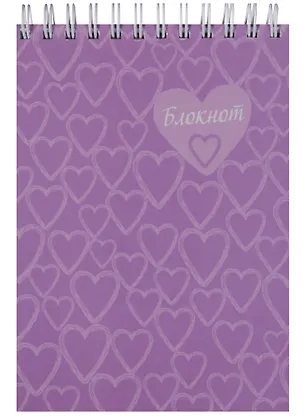 Блокнот А6 120л кл. "СИРЕНЕВЫЕ СЕРДЕЧКИ" верхн.гребень, карт.обл., глянц.УФ-лак, офсет 60г/м2