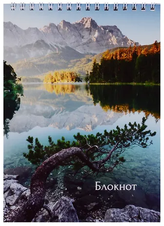 Блокнот А5 60л кл. "ГОРНОЕ ОЗЕРО" верхн.гребень, карт.обл., глянц.УФ-лак, офсет 60г/м2