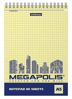 Блокнот А5 80л кл. "MEGAPOLIS Yellow Concept" на спирали, ErichKrause