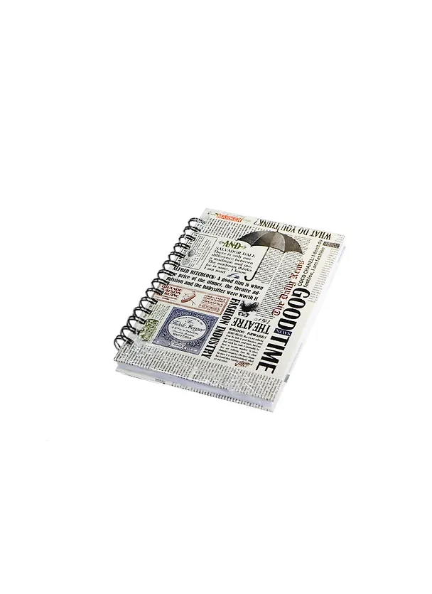 Блокнот А6 100л кл."NEWSPAPER" 7БЦ, выб.уф-лак., евроспираль, ассорти, MARKER ARTE