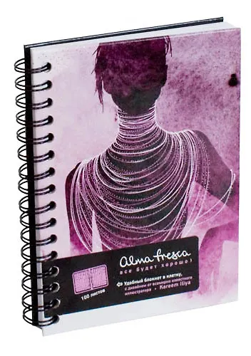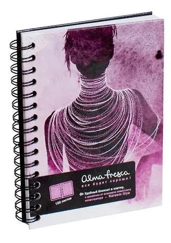 Блокнот на спирали, Сочетание творчества модного представителя мирового искусства Карима Илии и высококачественных материалов превратили блокнот в имиджевый аксессуар, Позволит вам раскрыть свой неповторимый образ, яркий и таинственный, Небольшого формата, его можно использовать как и компактную записную книжку, способную свободно разместиться в небольшой сумке, Жесткая ламинированная обложка долго сохраняет привлекательный внешний вид и позволяет делать записи на весу, Внутренний блок выполнен из высококачественной офсетной бумаги в клетку фиолетового цвета, Формат: А6, Количество листов: 100, Материал: бумага, картон, металл.
