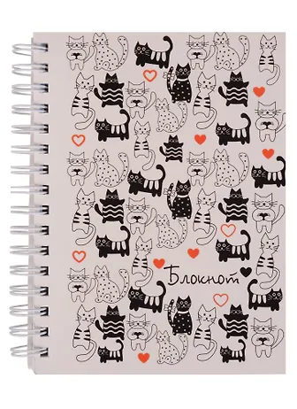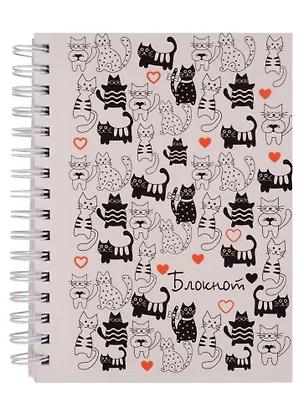Блокнот А6 120л. арт. 45419/СВ/6 КОТИКИ НА БЕЛОМ /Крепление-гребень сверху, обложка полноцвет. Мелов. картон 210 г, блок-офсет 65 г/
