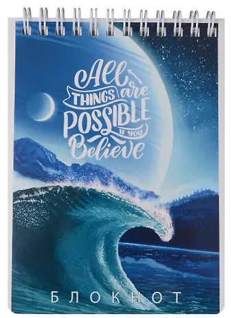 Красивый блокнот, выбрала его из-за надписи на обложке: "Всё возможно, если ты веришь". Но качественный здесь не только дизайн, но и исполнение. Страниц много, клетки пропечатаны чётко. Блокнот довольно пухленький, но при этом не тяжёлый, а гибкий (из-за этого приехал чуть согнутым). Только обложка мне показалась тонковатой, хотелось бы немного плотнее. Листать страницы удобно, а у них самих есть перфорация на отрыв, и это приятно меня удивило. Хороший блокнот