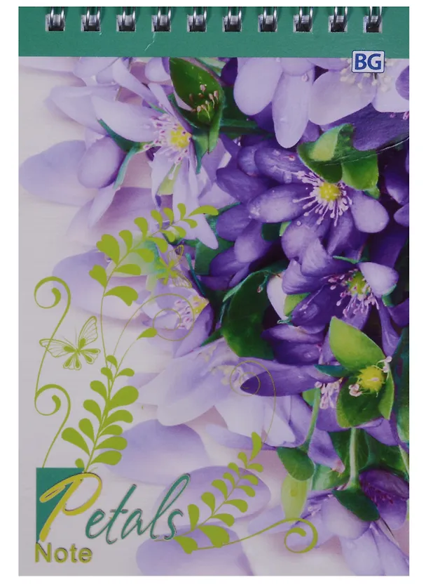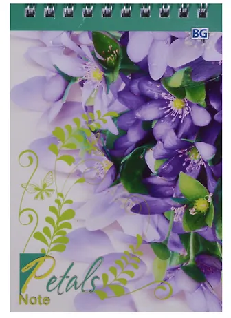 Блокнот А6 40 листов клетка "Лепестки" картонная обложка, гребень, БиДжи. В ассортименте, без возможности выбора