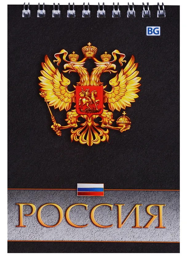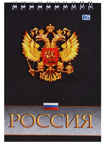 Блокнот А6 60 листво клетка "Россия госсимволика" картонная обложка, гребень, БиДжи. В ассортименте, без возможности выбора