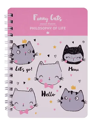 Блокнот А6 80л кл. "Funny cats"карт.обл., ламинация, бок.спираль