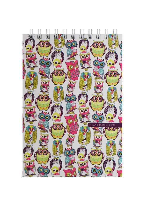 Блокнот А6 80л кл. "Орнамент. Веселые совы" 7БЦ, глянц.ламинация, евроспираль, Listoff