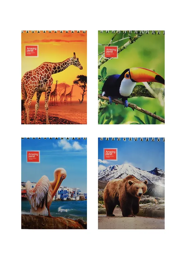 Блокнот А6 80л кл. "Удивительная планета" карт.обл., гребень, выб.лак, ассорти, ПЗБФ