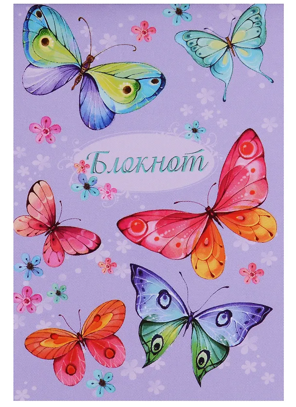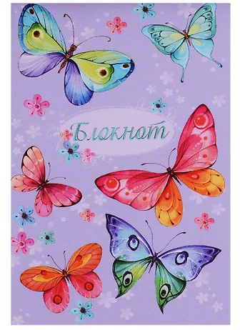 Блокнот А7, 32 л. арт. 47131/30 ЦВЕТНЫЕ БАБОЧКИ /переплет-скоба сверху, обложка - мелов. бумага 150 г, полноцв. печать, блок - офсет 65 г, печать в 1 цвет, клетка/
