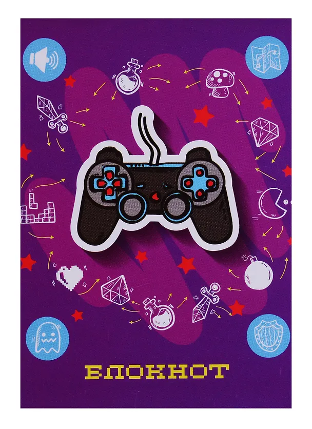 Блокнот А7 32л кл. "Джойстик" карт.обл., скоба, ассорти