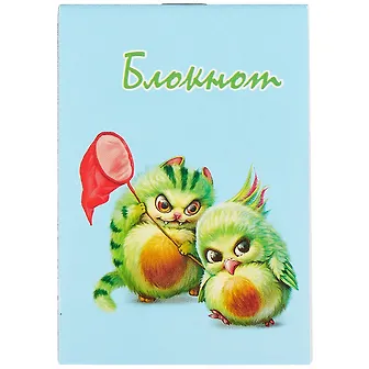 Блокнот с милыми котиком-авокадиком и попугаем-авокадиком
