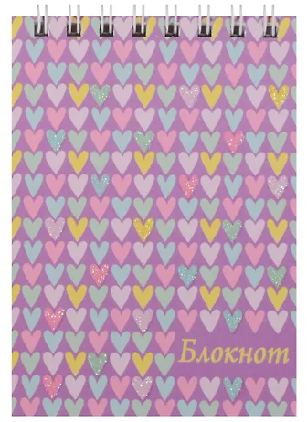 Блокнот А7 40л "Фактура сердечки" карт. обл., гребень