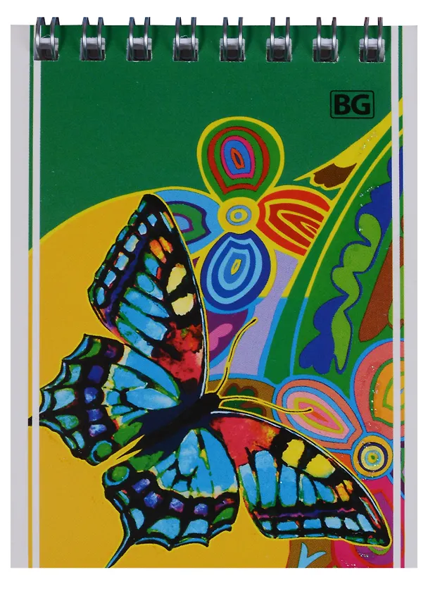 Блокнот А7 40 листов клетка "Рисунок с бабочкой" картонная обложка, гребень, БиДжи. В ассортименте, без возможности выбора