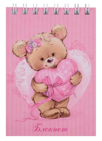 Блокнот А7 40л "Мишка и сердечко" карт. обл., гребень