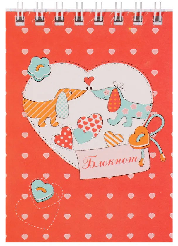 Блокнот А7 40л "Собачки в сердечке" карт. обл., гребень