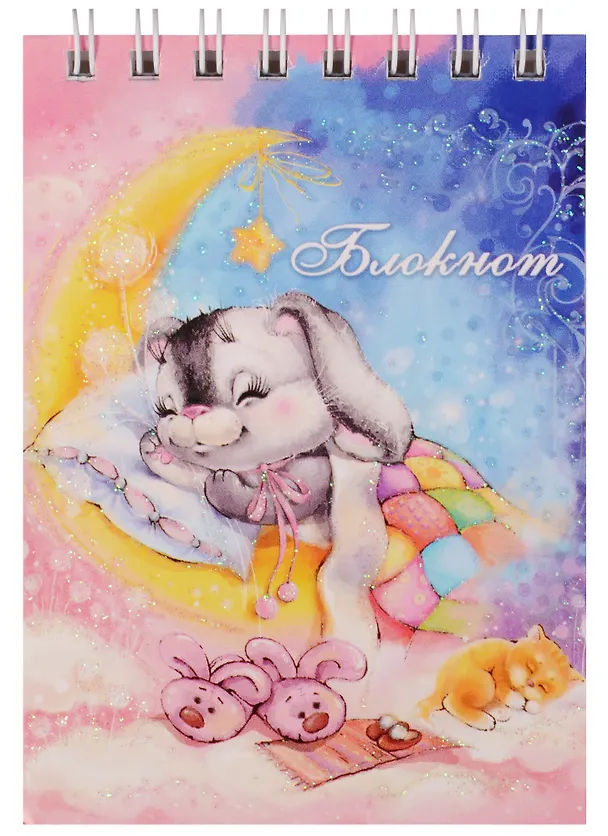 Блокнот А7 40л "Зайка на месяце" карт. обл., гребень