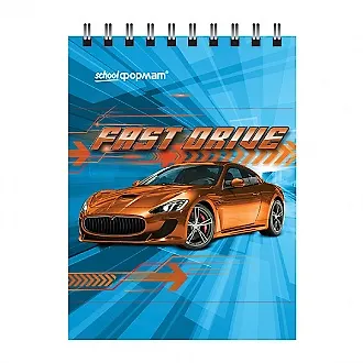 Блокнот А7 40л кл. "ФОРСАЖ" гребень, мел.картон, глянц.ламинация, schoolФОРМАТ