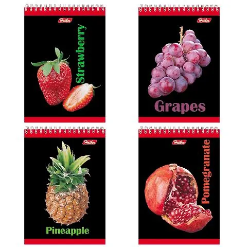 Блокнот А7 40л кл."Фрукты на черном" гребень, тонир.блок, цв.обл,офсет, Hatber