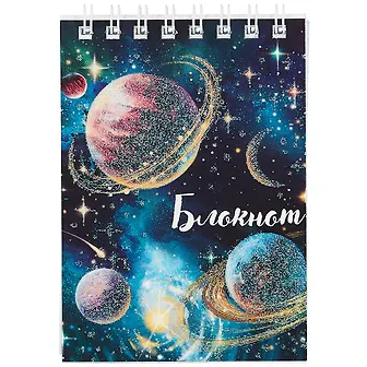 Блокнот А7 40л кл. "КОСМОС" гребень, выб.УФ-лак с глиттером, белый офсет 60г/м2