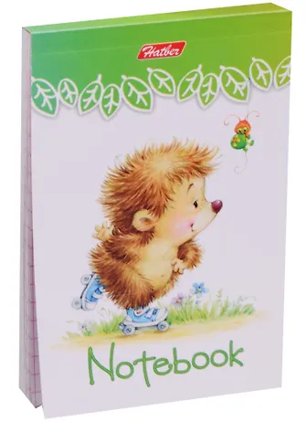 Блокнот А7 48 листов клетка "Забавные ежики" 3-х-цветный блок, склейка, Hatber