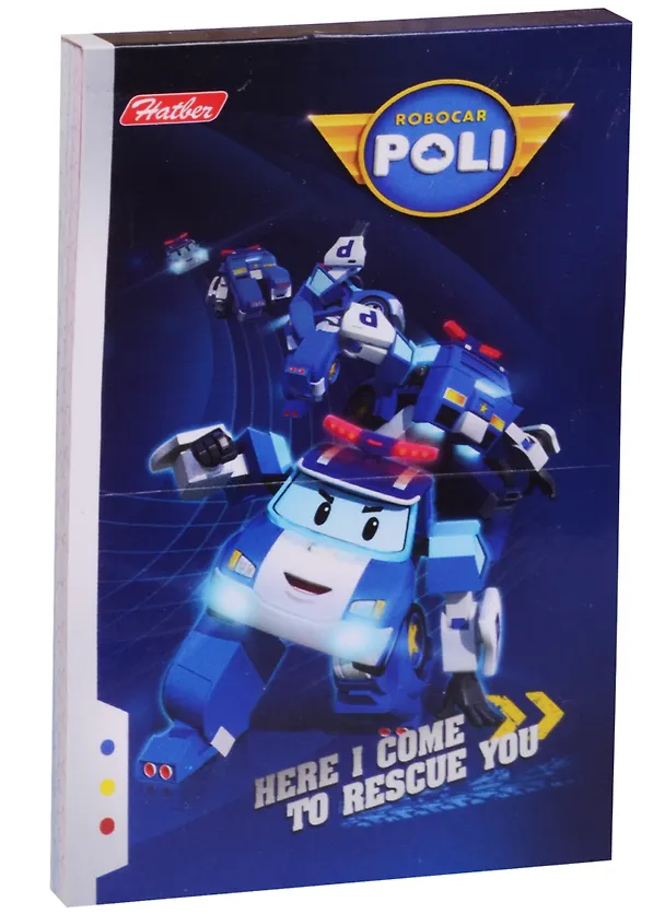 Блокнот А7 48 листов клетка "Машинки-Роботы" 3-х-цветный блок, склейка, Hatber