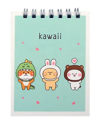 Небольшой блокнотик с забавной и милой обложкой приятного и в меру яркого цвета. Картон обложки средней плотности, с фактурным лаковым покрытием. Внутри - 60 листов в чёткую голубую клеточку, для записей очень удобны, не просвечивают. Крепление - спираль упрощает пользование блокнотом, легко перелистывать или убирать исписанные листки.