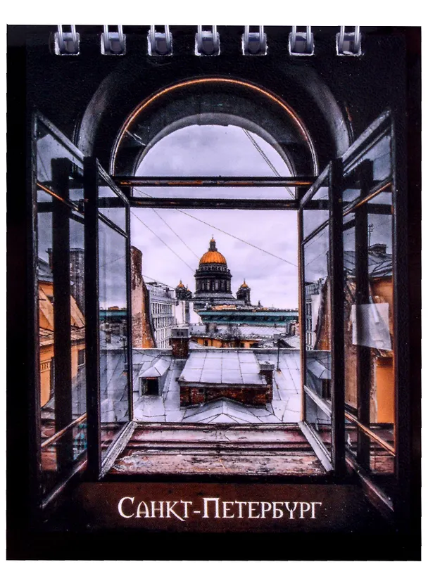 Маленький блокнот формата А7, который поместится в любой сумке. В блокноте 60 листов в клеточку, закреплённых спиралью. На обложке — фотография Исаакиевского собора.