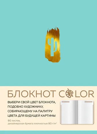 Блокнот Color (бирюзовый). Резинка, тиснение зол. фольгой, искусственная кожа, 80 л, А5