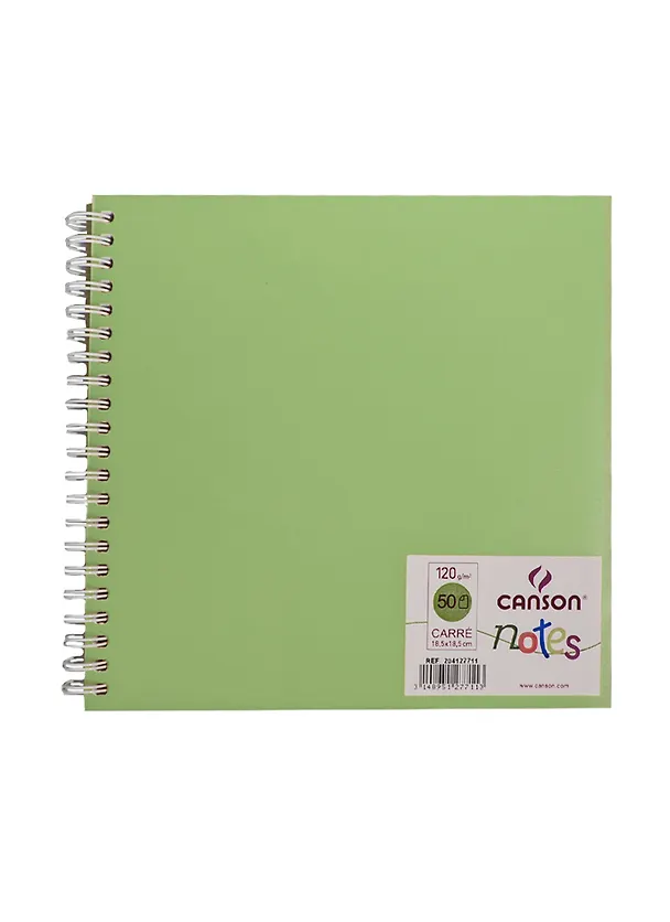 Блокнот для эскизов 185*185 50л "Notes" 120г/м2, зел.пласт.обл, спираль, Canson